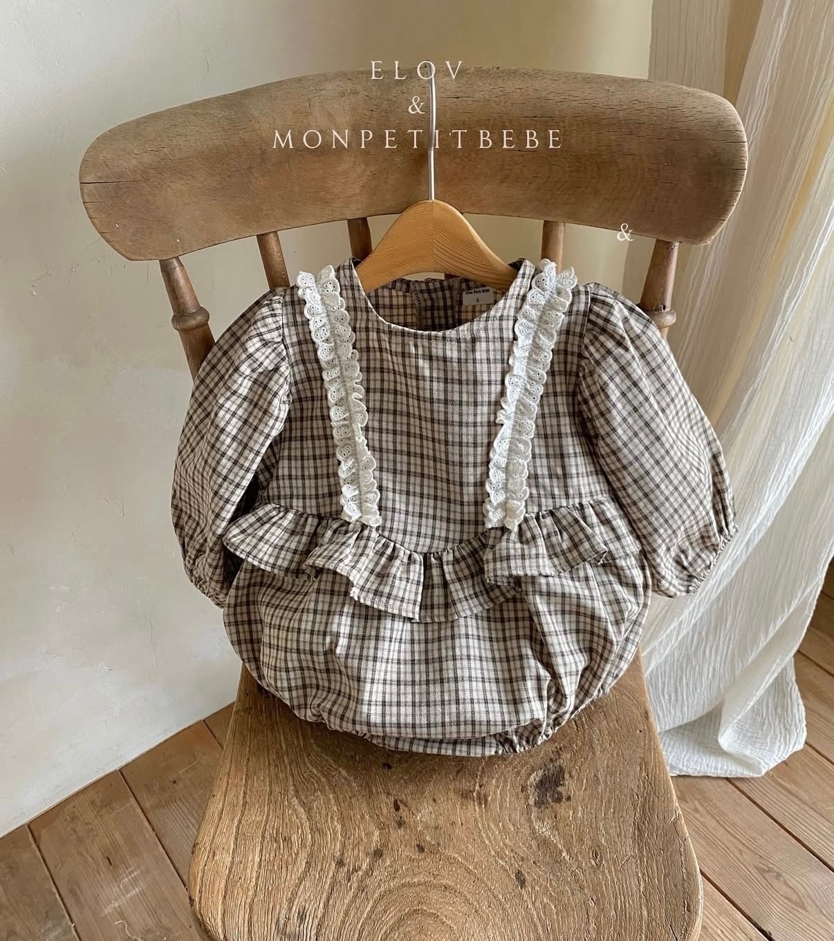 check shoulder frill suit【Monpetitbebe】