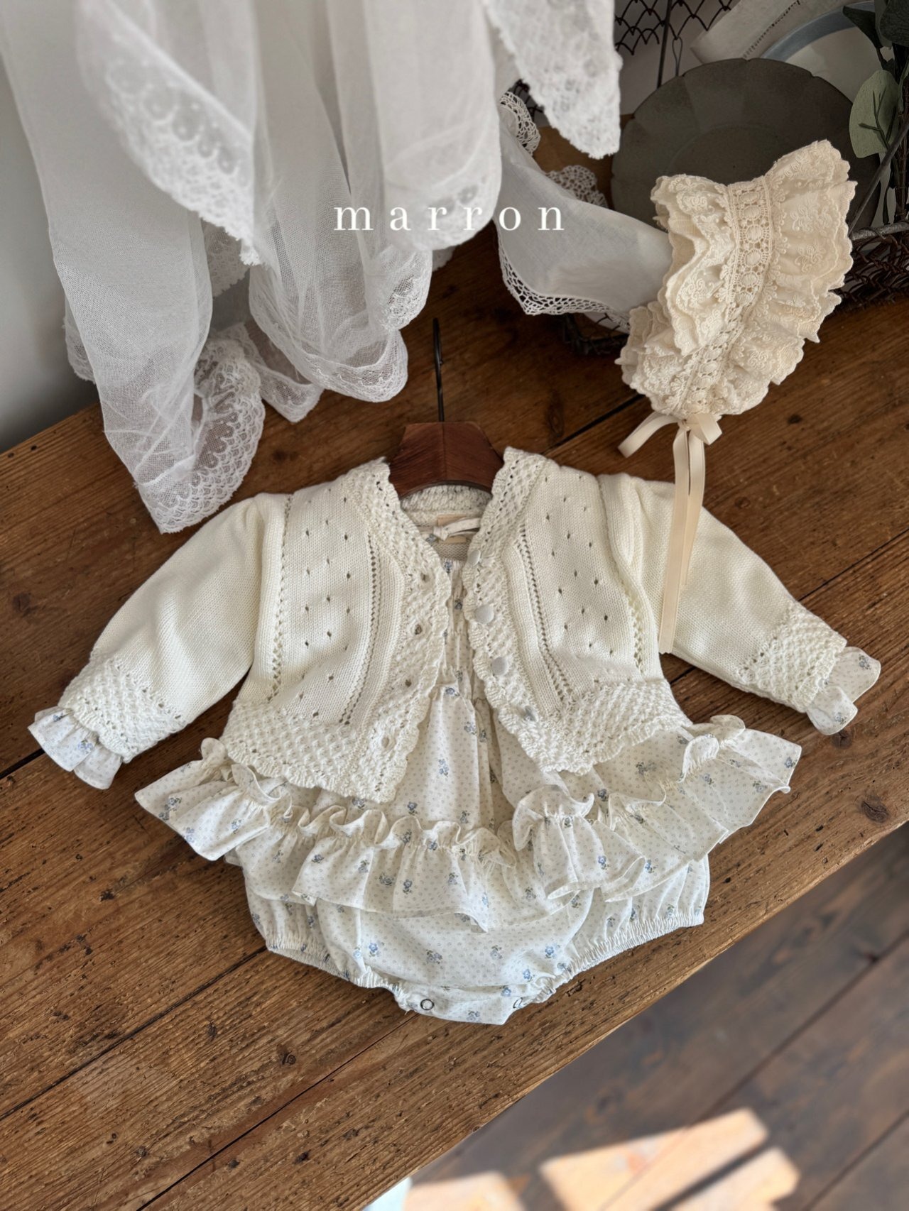 frill lace layer babushka【marron】