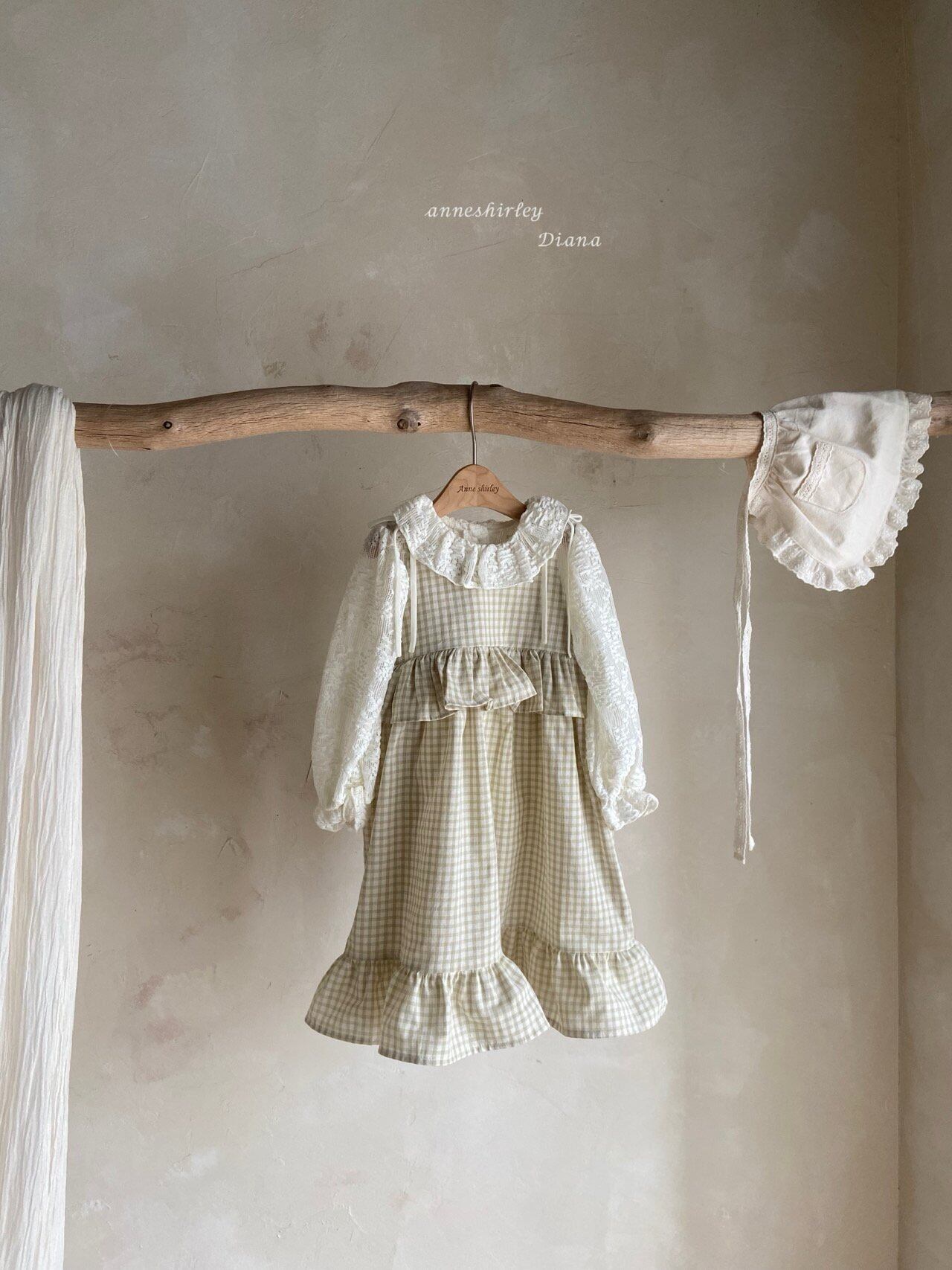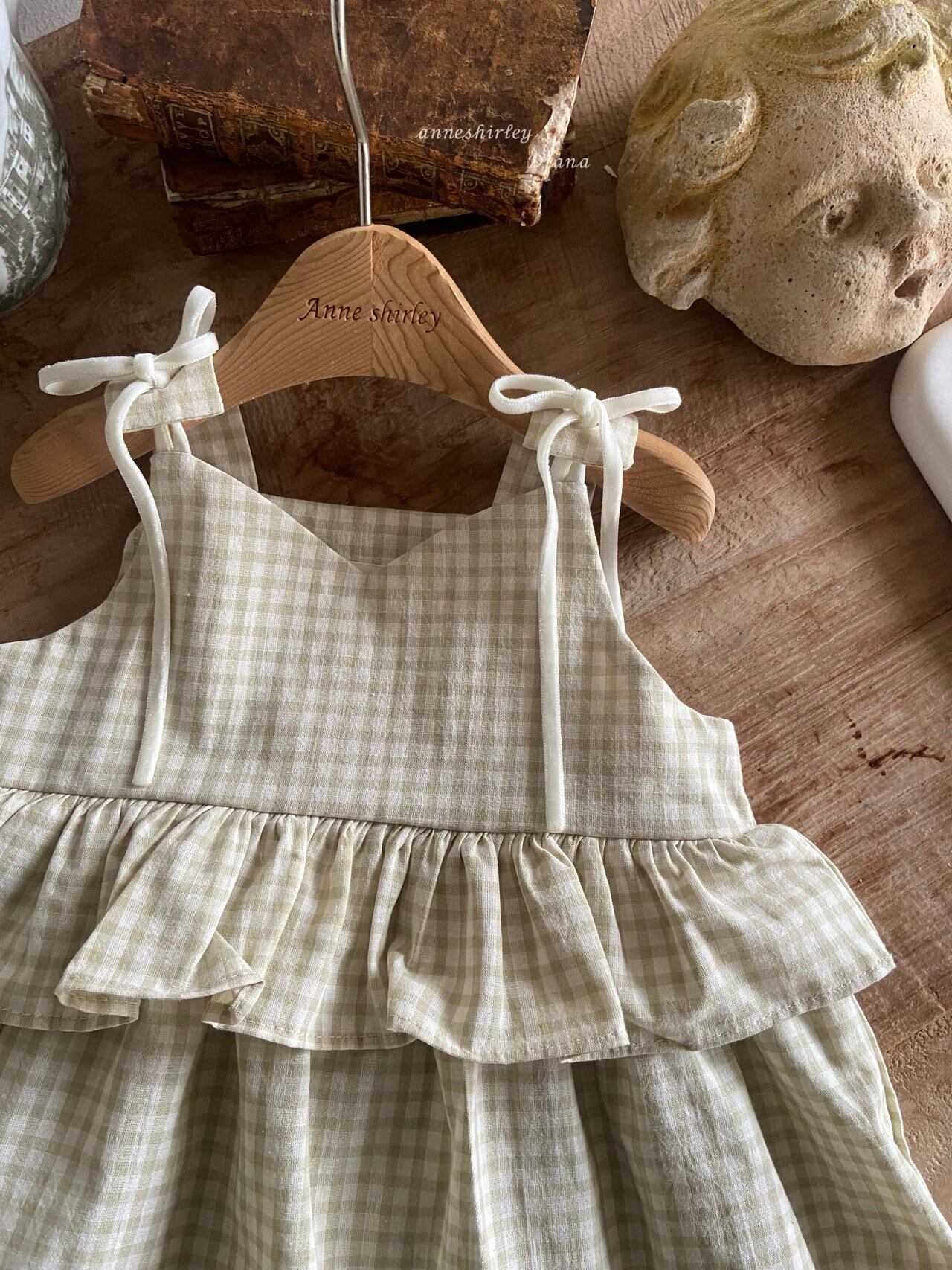 〈kids〉lovely mint check one-piece【Anneshirley】